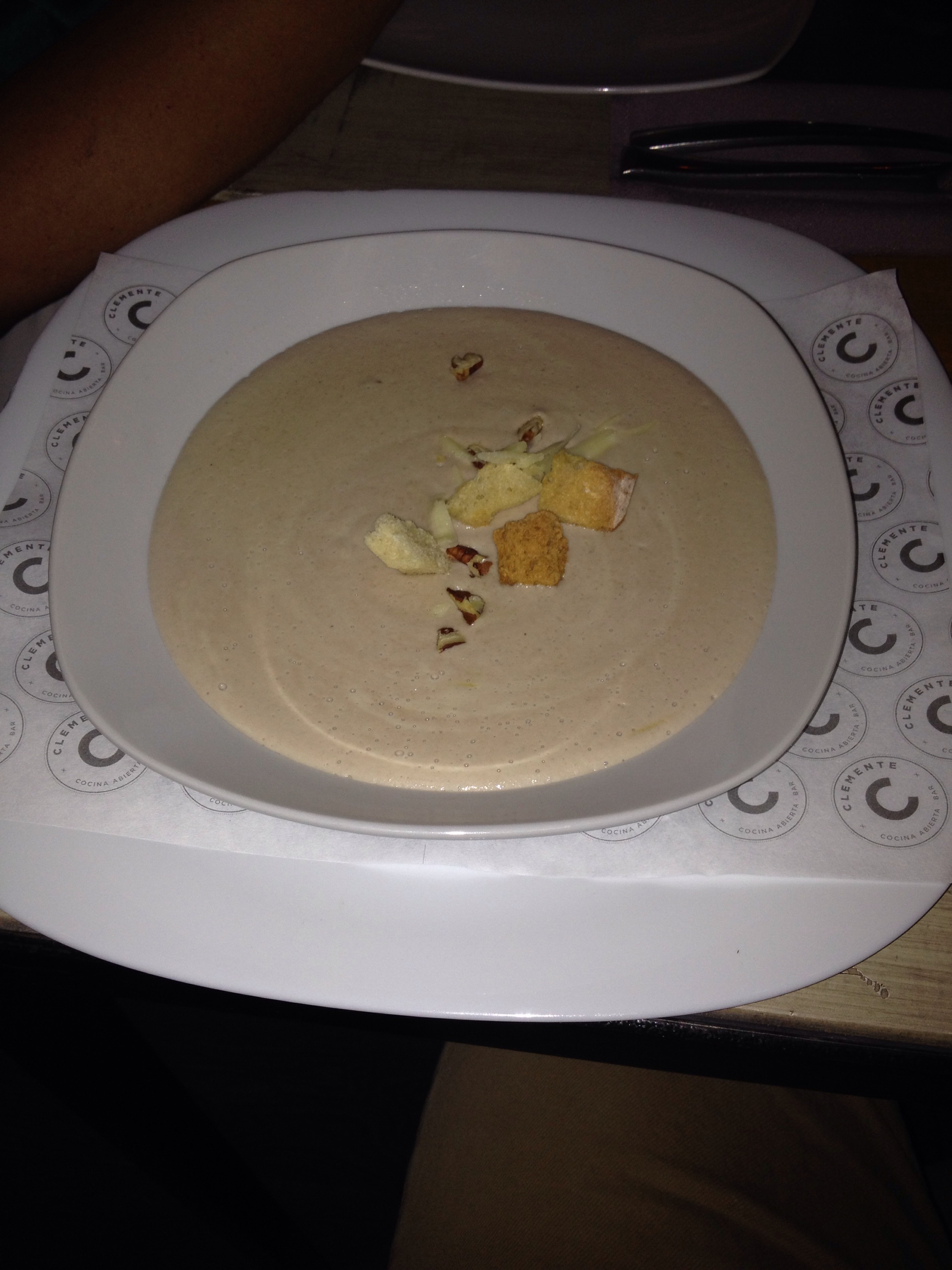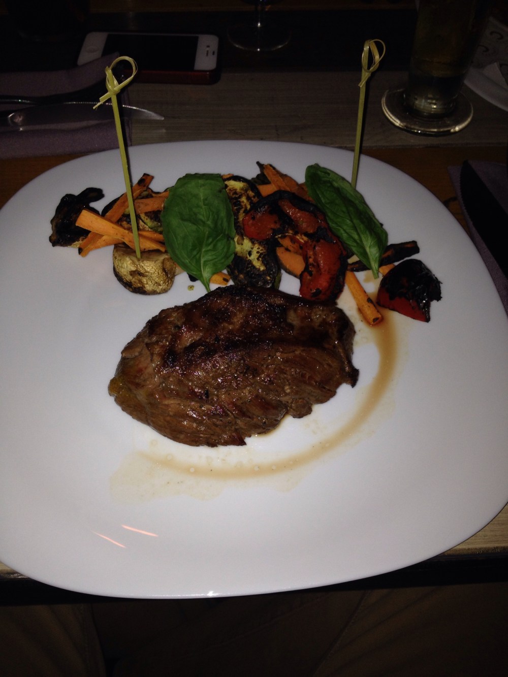 La variedad del menú reunía de ciertos platos propios adaptados a la originalidad del chef, de marcado interés la crema de champiñones, seguido el jugoso corte de 300 gramos de vacío confitado acompañado de verduras a la parrilla.