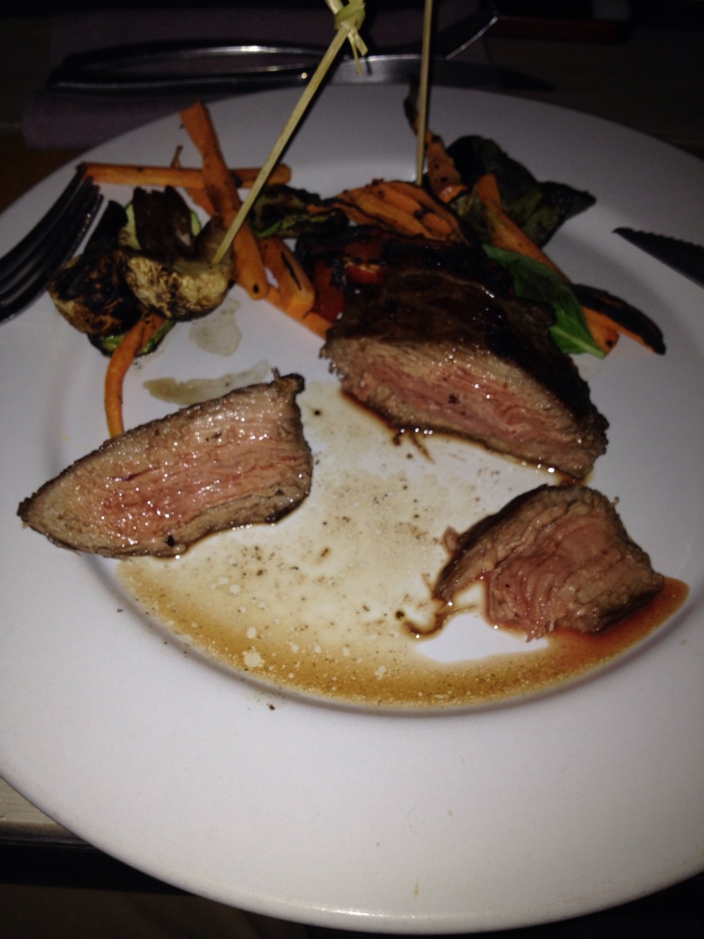 Acostumbrado siempre en pedir la carne en termino de tres cuartos, el segundo plato cumplió con las expectativas después de haber sido sorprendido con la sopa de entrada y flanqueado por los champiñones salteados que fué el plato colectivo donde todos los presentes en la mesa se dieron rienda suelta y el deleite fue el común denominador