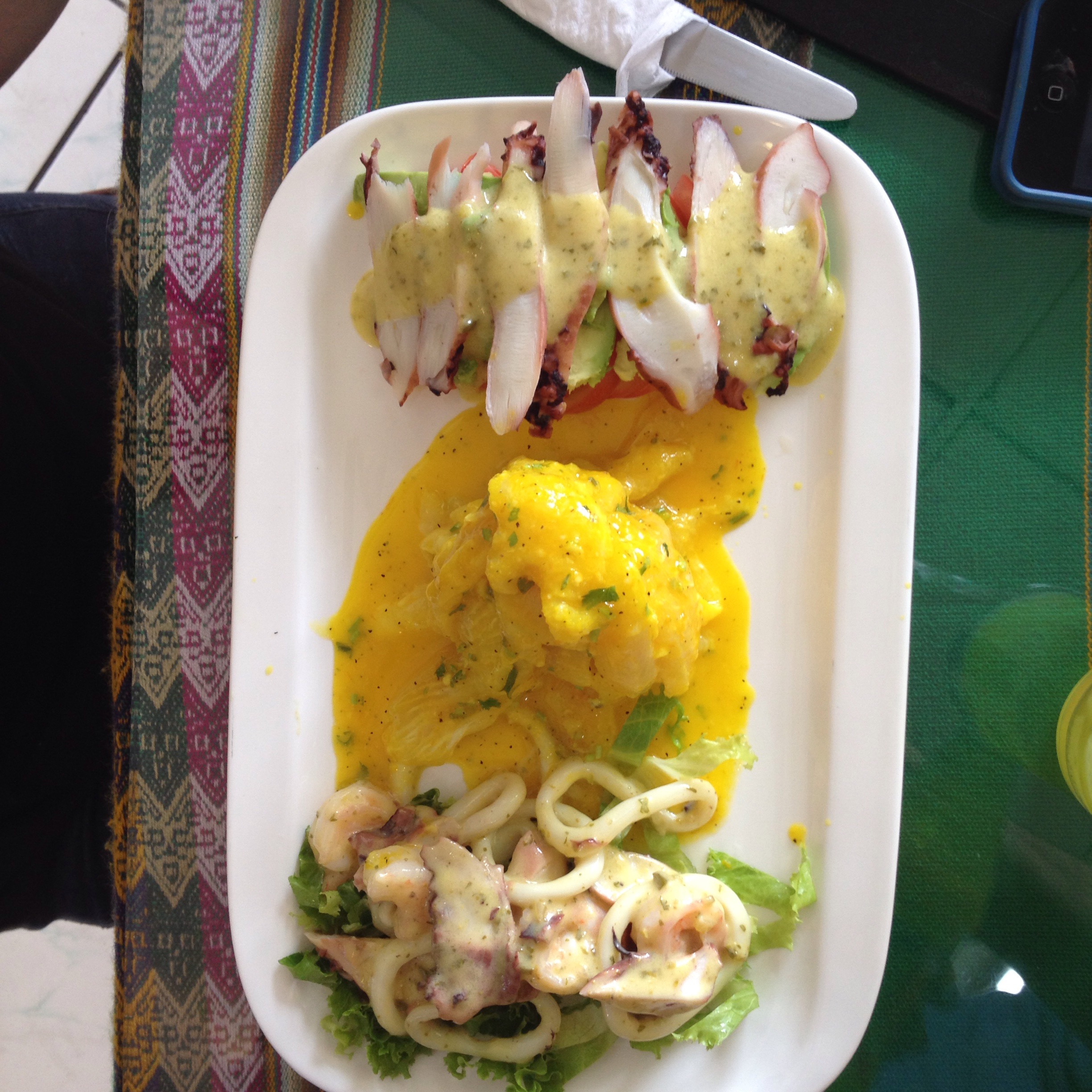 El color amarillo fue el protagonista en este almuerzo, estuvo presente en los platos de la entrada, en dulce compañía de la Inca Kola que se de destaca tanto por el color como por el sabor.