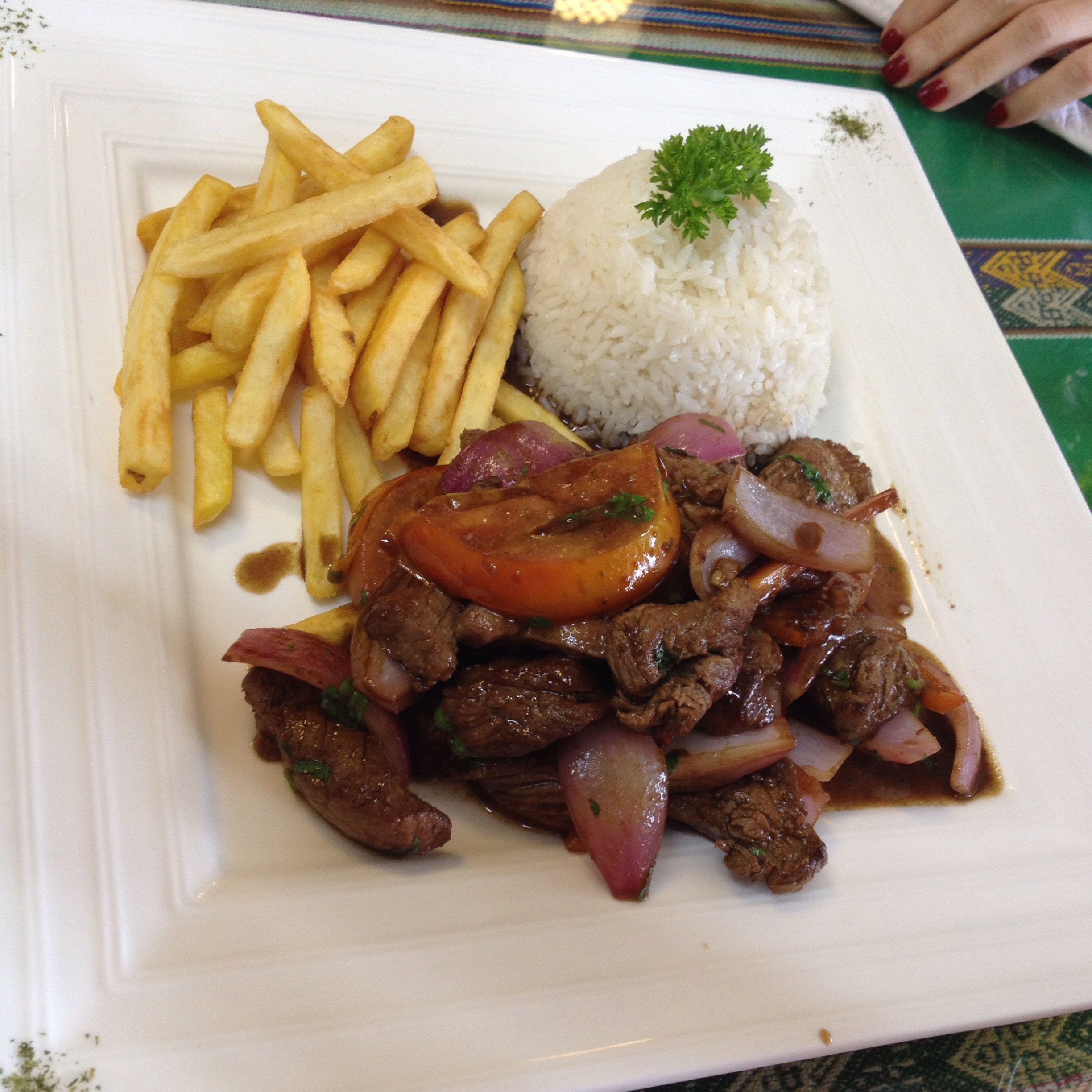 Carol que según ella no tenía hambre por haber desayunado tarde, no titubeó en madrugarme con los platos y fue necesario pedir de un lomo saltado, cuya carne era algo parecido a una mantequilla por la facilidad con la que se deshacía en la boca, y por supuesto el color amarillo, también estuvo presente.