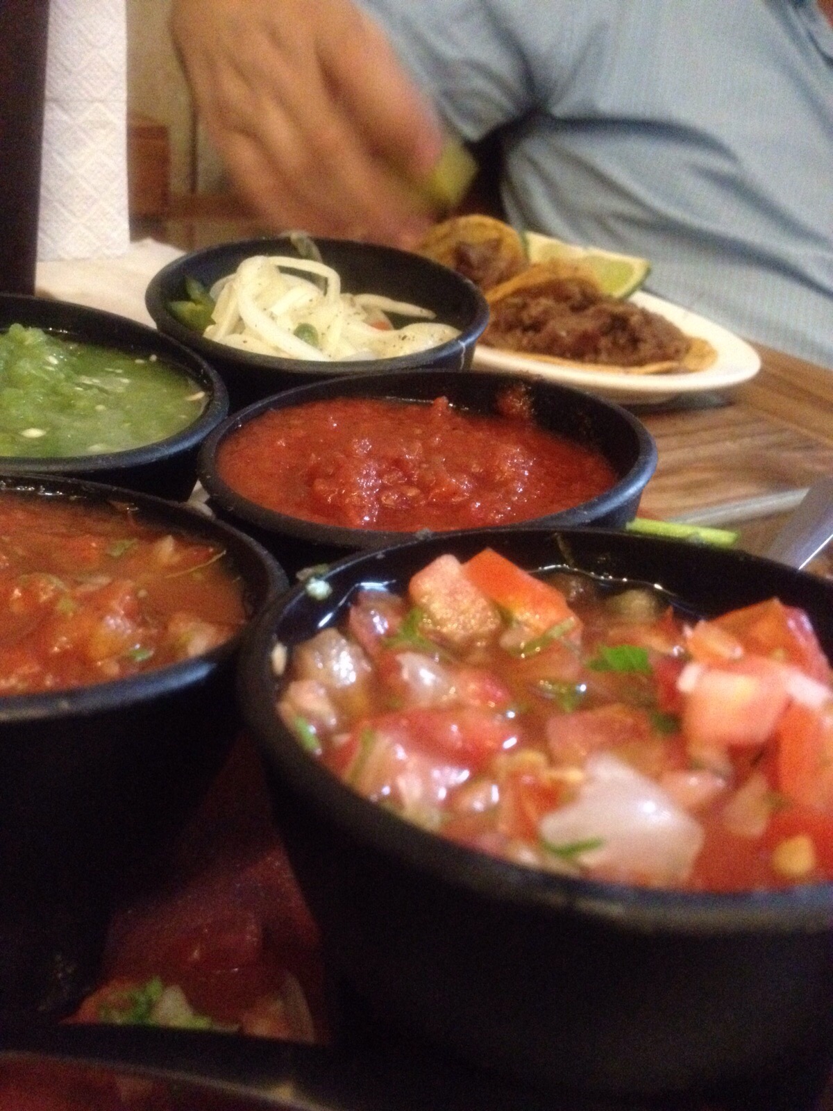 Para un día entre semana el tiempo de almorzar fue ajustado, por lo que la orden fue reducida a solo tres platos y la siempre apetecida entrada de totopos de la casa.