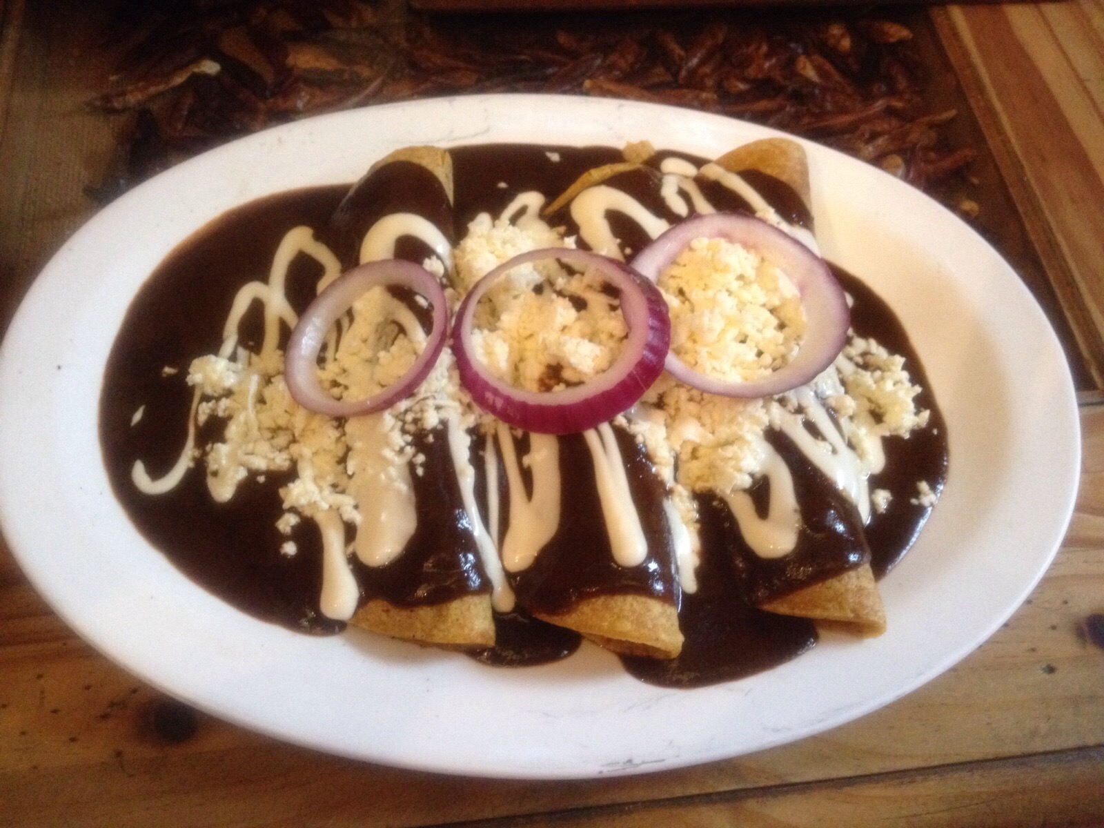 Enchiladas de pollo enmoladas