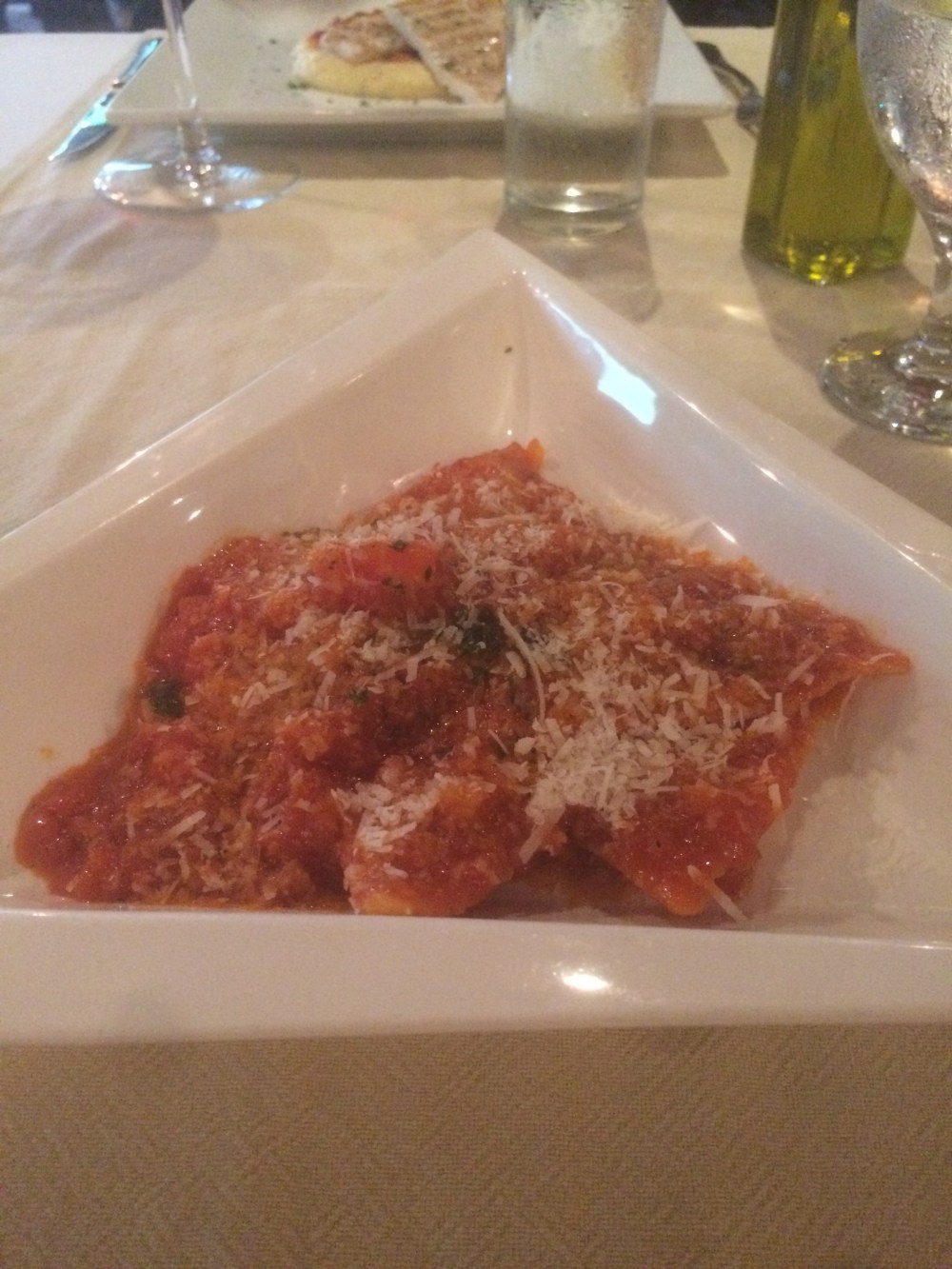 Cappelletti Relleno de Queso de Cabra, con una salsa de pomodoro y perejil, más el aceite de oliva que nunca puede faltar