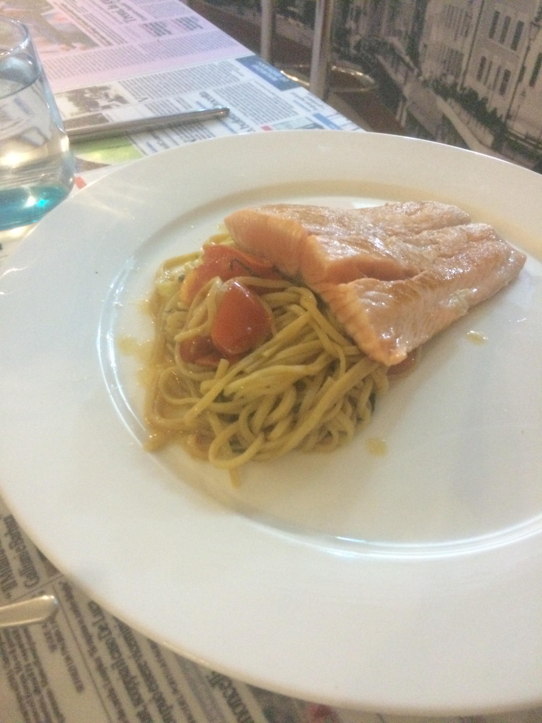 El Salmón en su punto que la Naranja y el Estragón se funden junto con una pasta al dente, algo sabroso y sencillo para un plato de gran repercusión por los buenos comentarios recibidos.