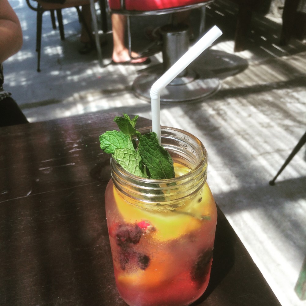 Con solamente Agua Mineral como único refresco gaseoso disponible en Maza Bistró, se nos presenta una degustación de la Milagrosa, y de una Mimosa con Agua de Jamaica.
