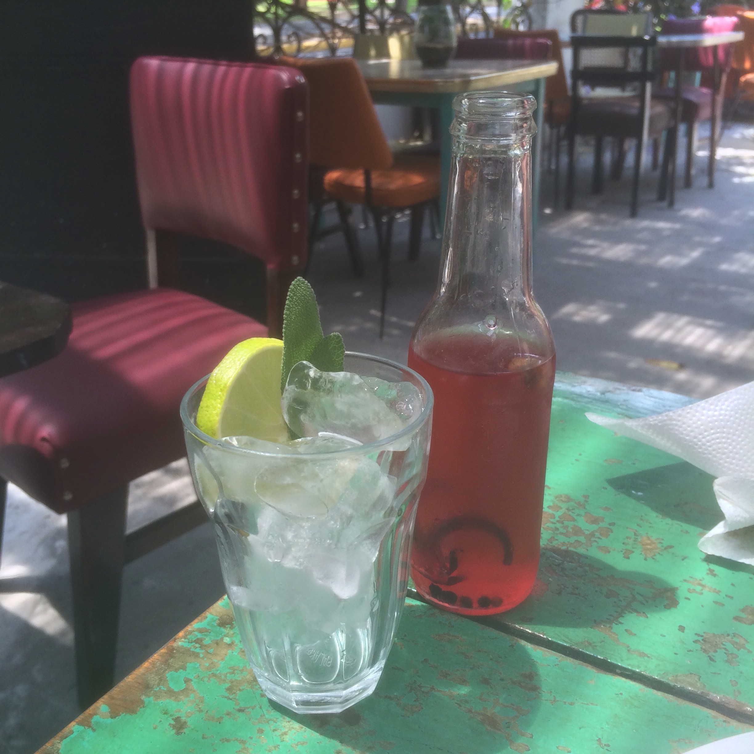 Ingredientes también de la Feria de Aranjuez como limón y albahaca, en las bebidas seañadieron unas pimientas negras que hicieron adquirir una dimensión para mí desconocida en cuanto a saborear una refrescante bebida, con tintes de pimienta natural apenas para aplacar los calores de una mañana de verano.