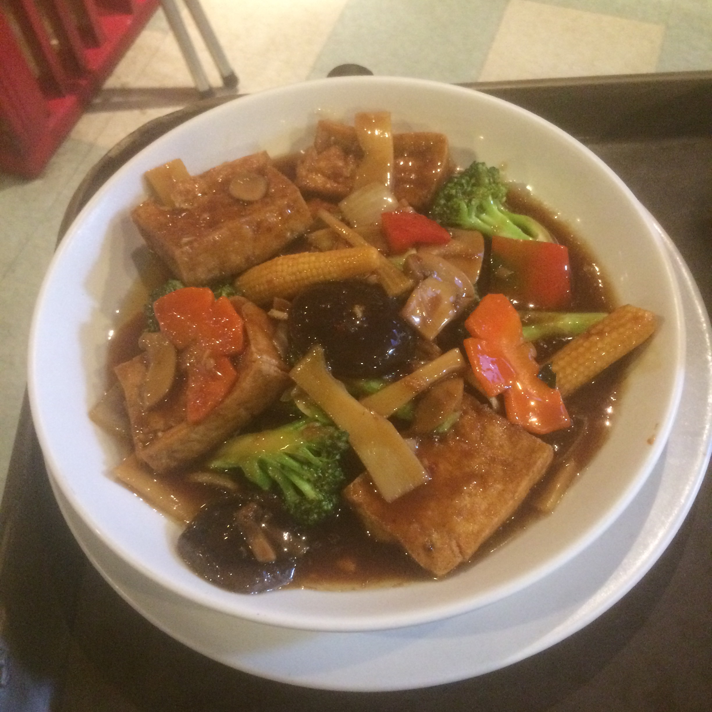Tofu, ese queso hecho a partir de la Soya, junto con el Bróculi, Zanahoria, Maíz tierno y Champiñones, recordando de ser un plato vegetariano y vegano a la vez, además de ser el picante fácil de ajustarlo según el gusto del cliente.