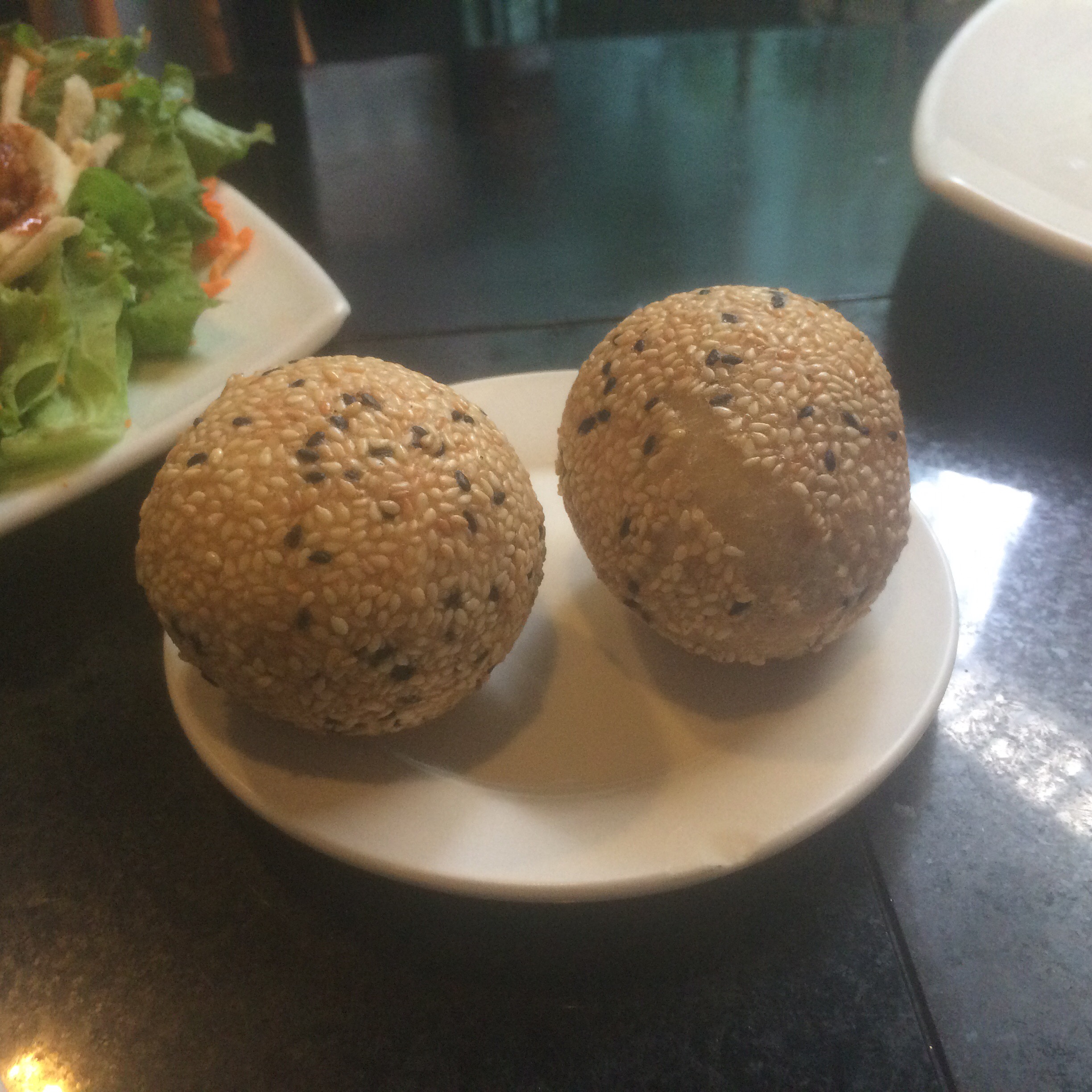 Se hace a partir de una harina de arroz que envuelve un relleno usualmente de carne (para los chinos el cerdo es de gran consumo y los mariscos es algo muy apetecido; pero por dicha en este restaurante se recordaron de quienes no consumimos más que ciertos tipos de alimentos.)