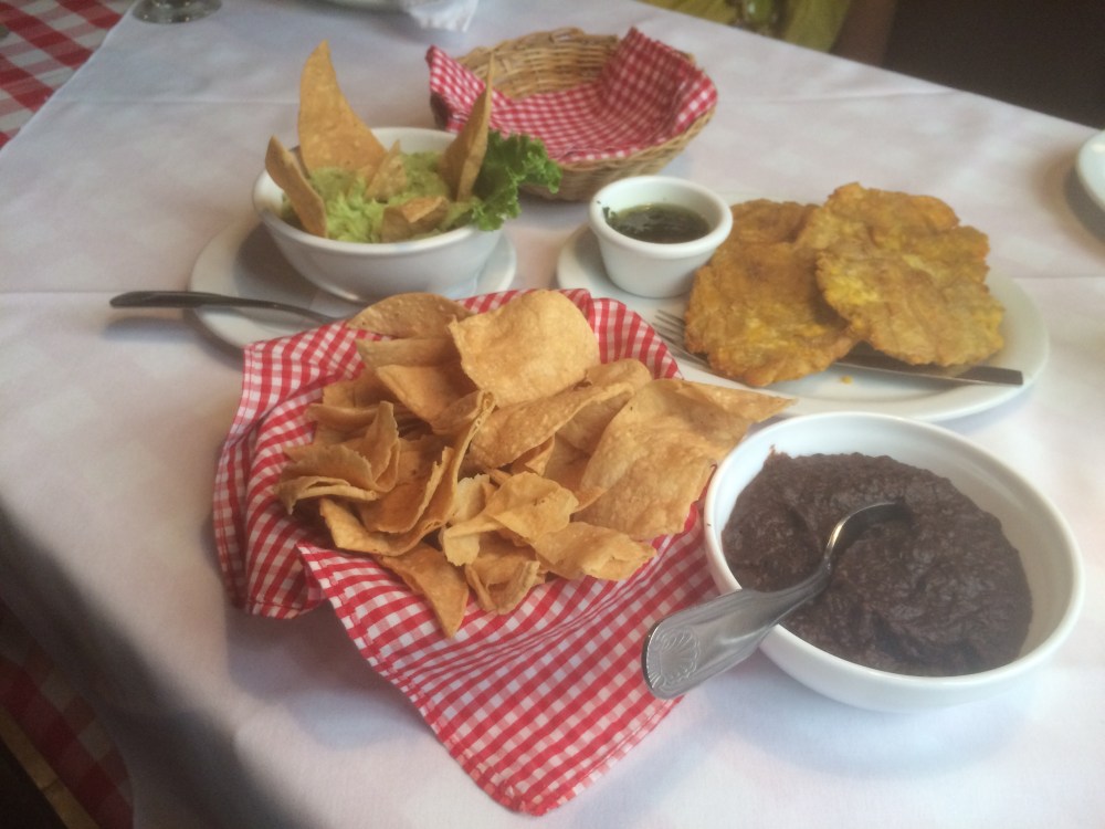 Entradas de Guacamole, Patacones y Frijolitos Molidos: Lo que bien empieza, bien termina y es un verdadero acierto de iniciar el almuerzo o cena con alguno de estos manjares; Unos Patacones generosos en la ración, que dejan sentir la frescura de algo recién hecho, Los Frijolitos que contienen un ingrediente secreto de la casa que le hacen un sabor único que fomenta en hacerse adictos a dicho plato. El Guacamole bien hecho y también que saborea los encantos de una cocina que siempre está vigente.