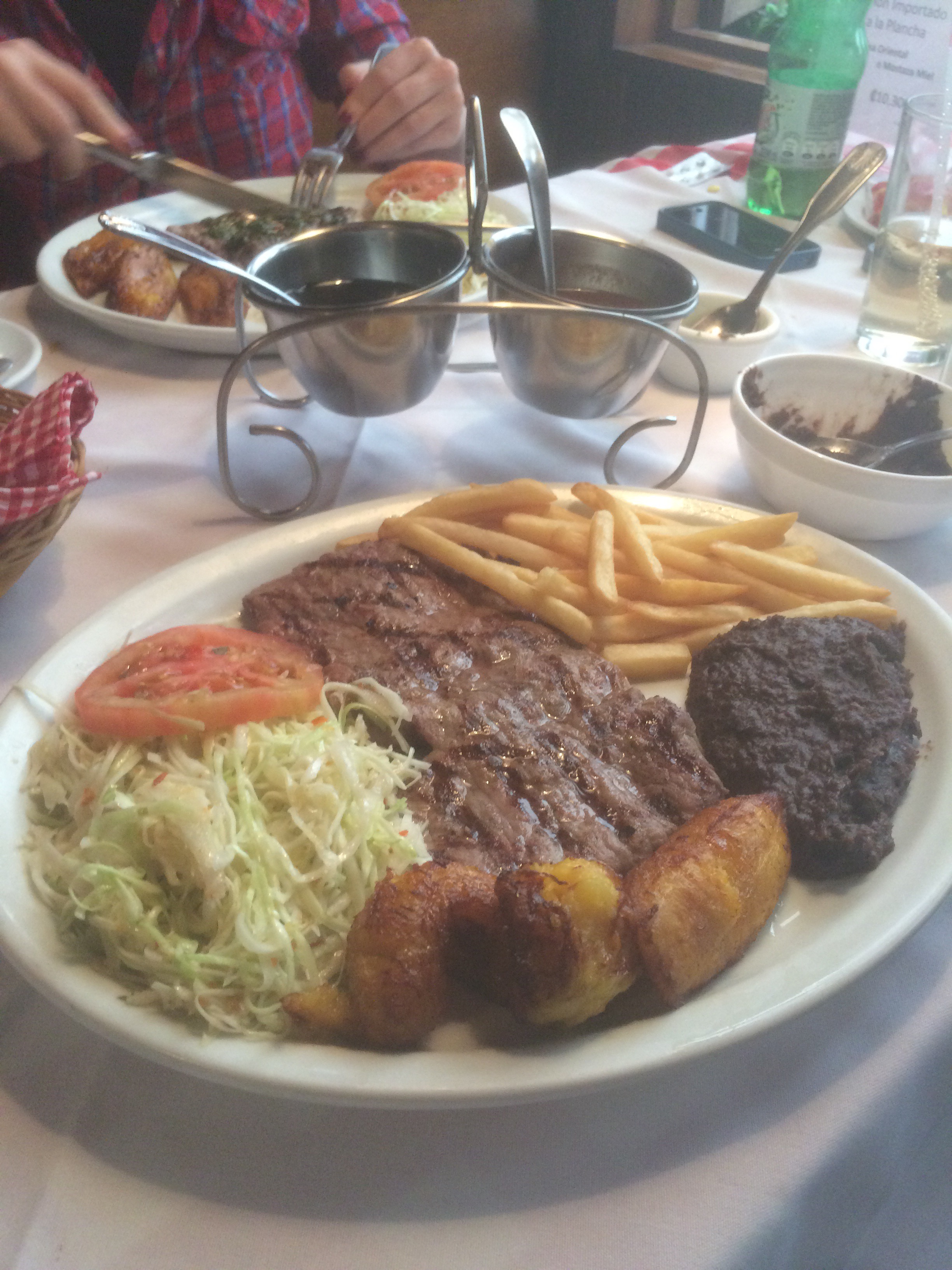 Lomito de ocho onzas con Repollo Agrio y Platanos Maduros El punto más alto de toda la reseña, una carne suave y jugosa, de sabor único, que se mantiene invariable durante todas las veces que se visita el restaurante; una garantía para ser de un buen anfitrión cuando se reciben visitas del extranjero o de la ocasión que se presta para algo inolvidable.