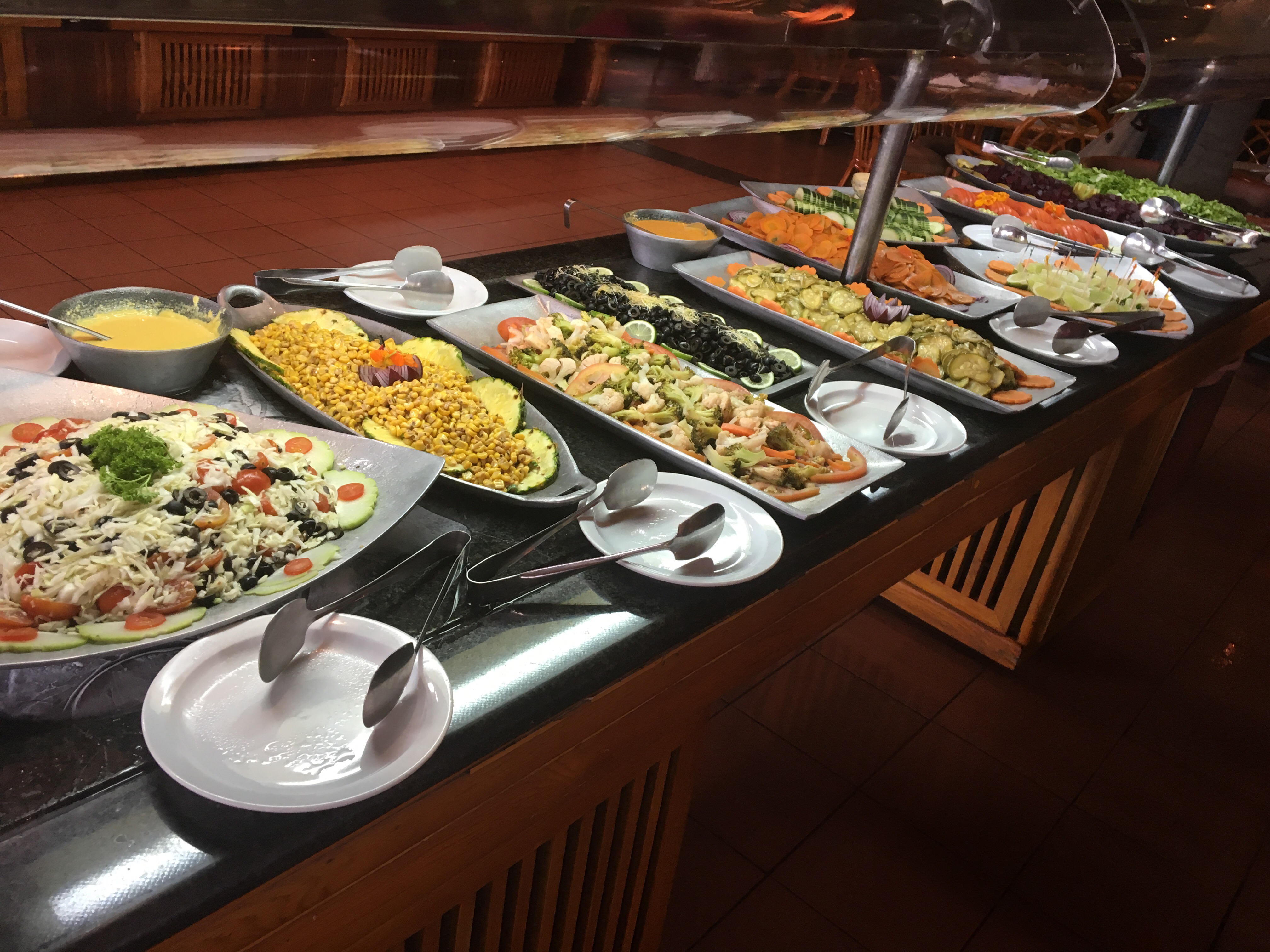 Cuatros estaciones, en un total de dieciocho opciones de platos calientes, siete tipos de ensaladas y otro tanto en escabeches de distintas texturas y sabores.