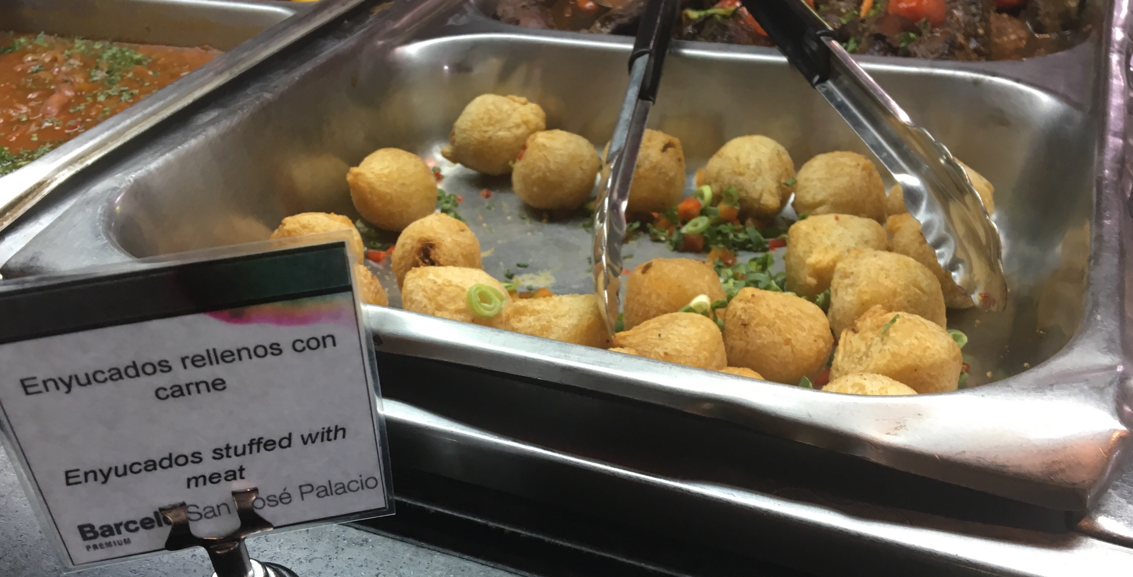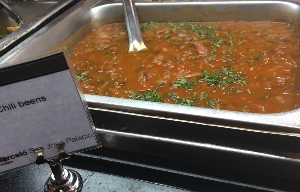 Las opciones calientes sobresalían por su amplia variedad y por qué dejaba mostrar en esos manjares, la creatividad de Sergio pasando desde unas Papas Cajún, hasta unos medallones de lomito en salsa de champiñones, un puré de dos colores y unos plátanos maduros.