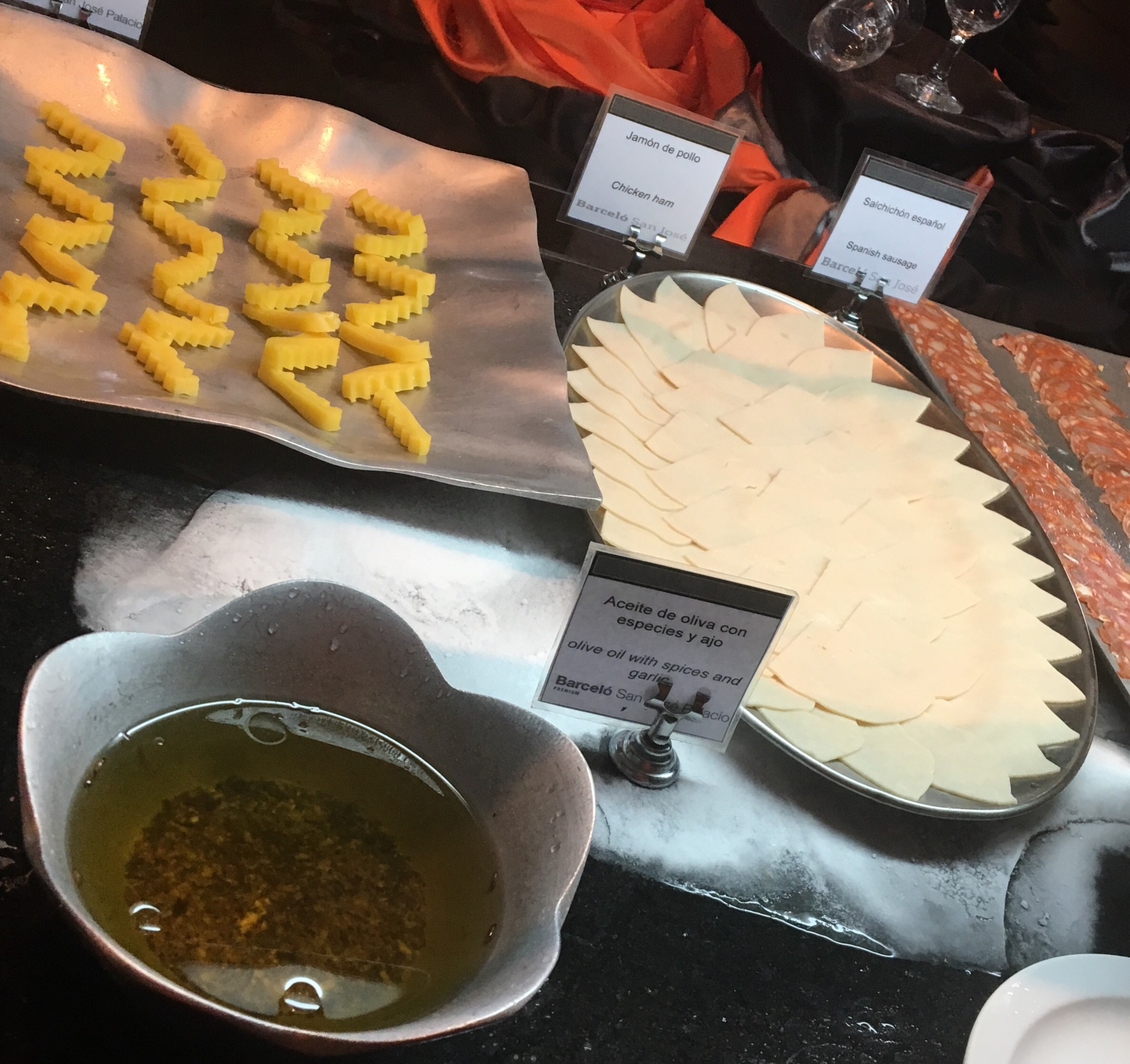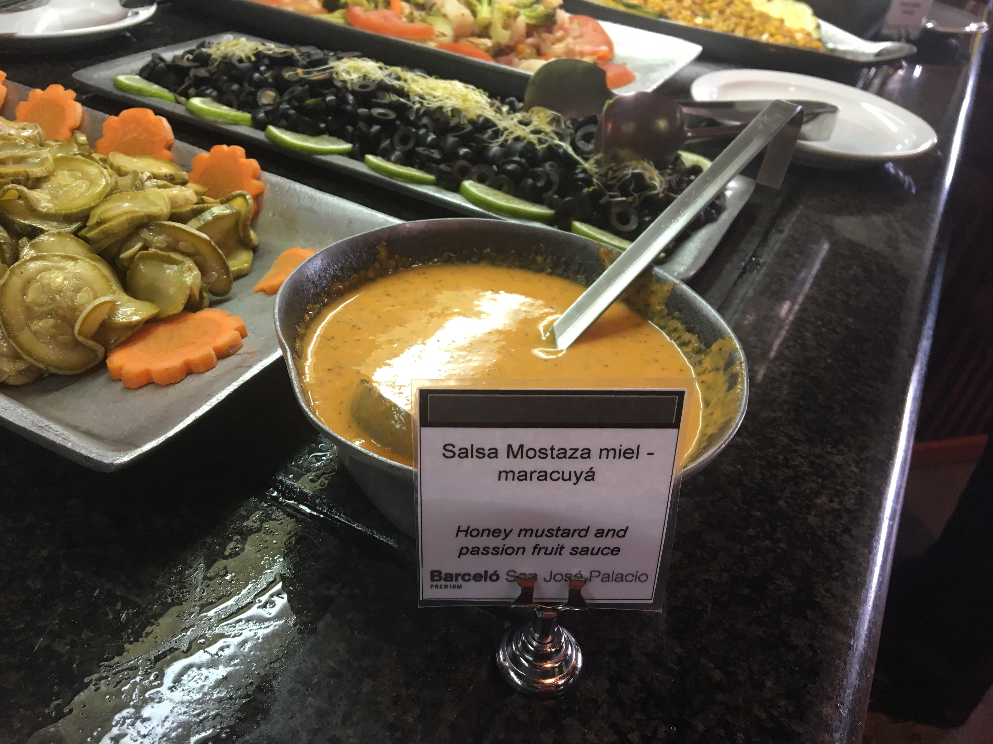 Entretanto, en el mismo menú, una selecta combinación de carnes frías y pimientos morrones, también los quesos se hicieron presentes, el Cheddar y el Turrialba como también en otra estación, la variedad de escabeches y antipastos resultó de una interesante combinación, y sus aderezos más exóticos, una Mostaza Miel con Maracuyá qué despertó un gran interés y fue realmente de antología.