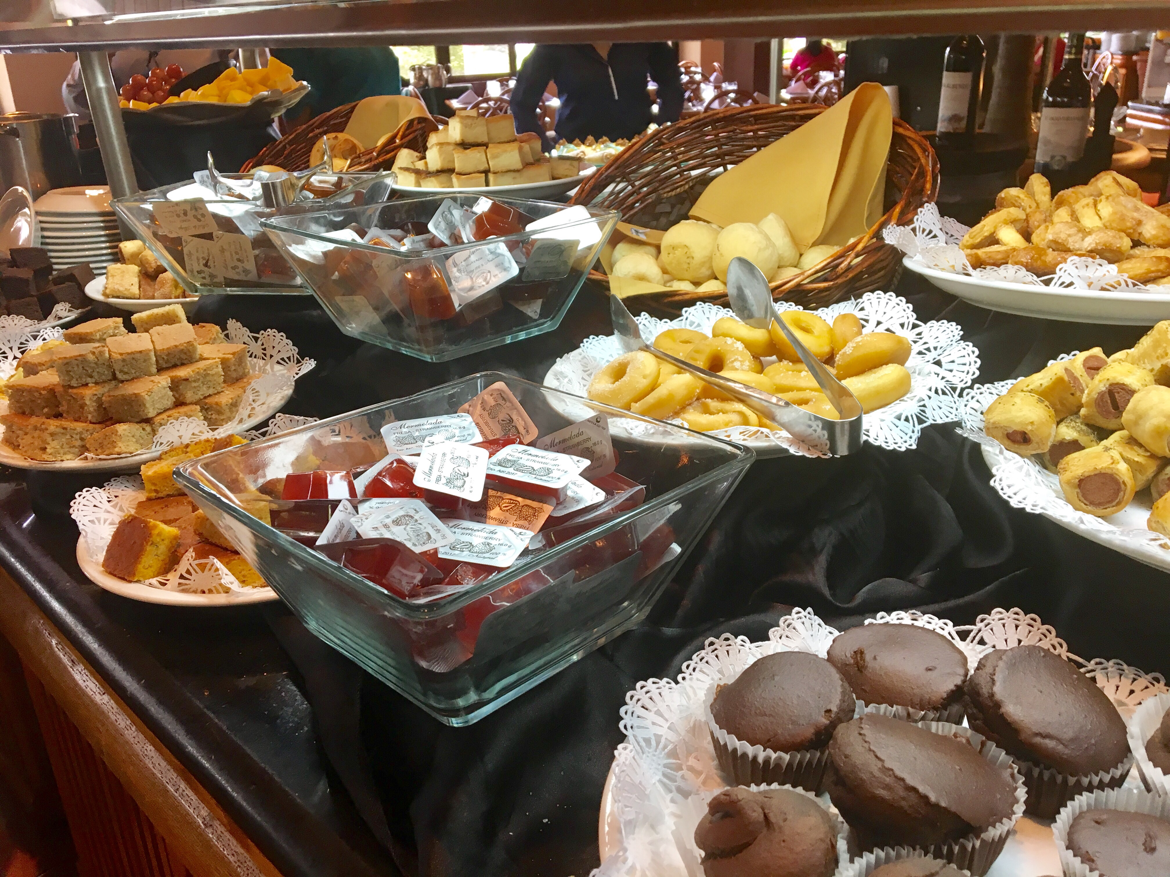 En el surtido de los panes y bizcochos, era de encontrar fácilmente una sabrosa combinación entre los más de doce bocadillos, diferenciados entre sí por unos GlutenFree , como también las frutas de temporada y una salsa de chocolate apenas para sumergir las frutas.