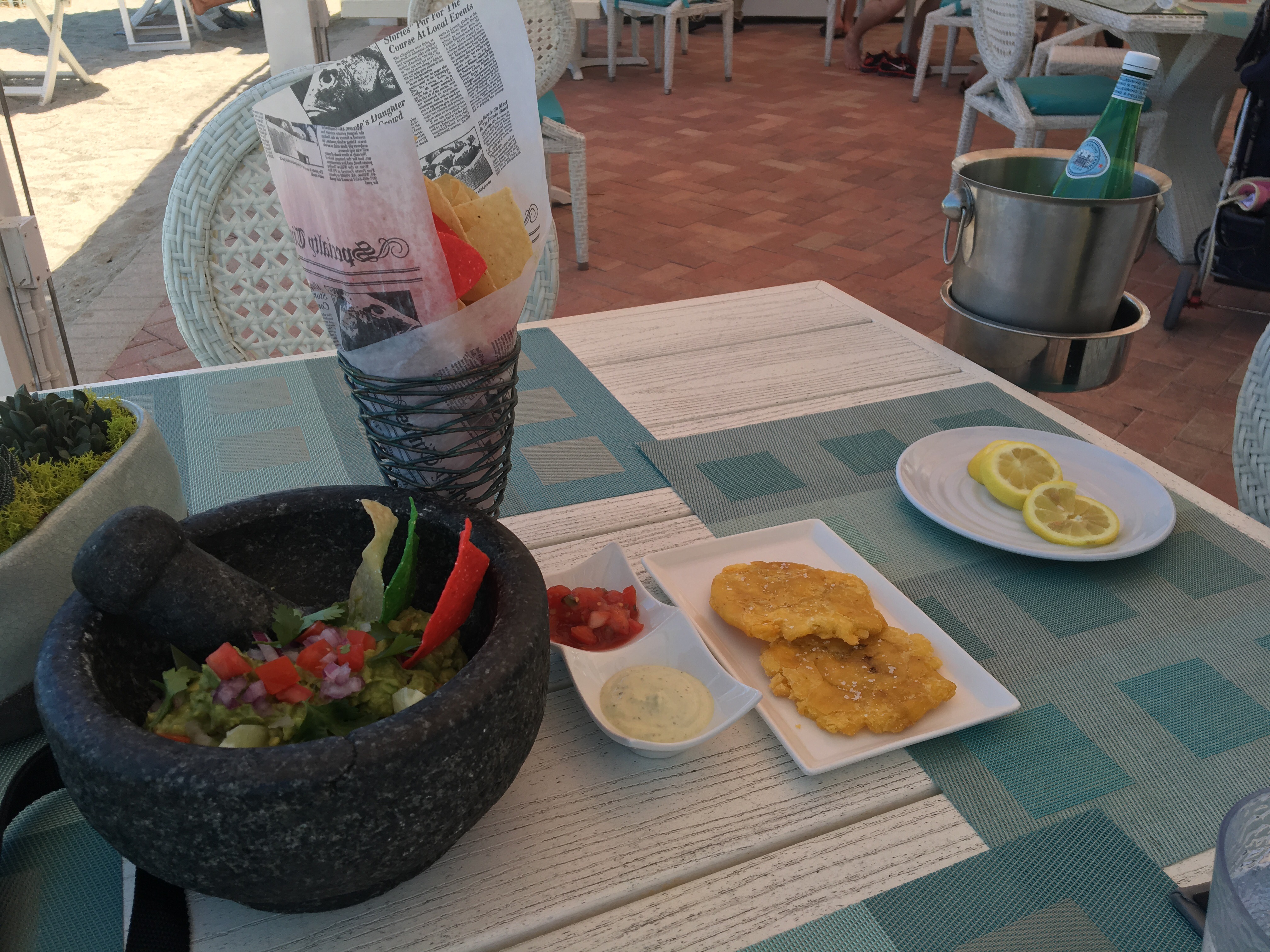 Un restaurante en la playa, que fue en donde hicimos la reseña consiste de una suficiente variedad de opciones para los comensales, desde ensaladas hasta hamburguesas, también de unas paellas de tamaño personal, y de entradas como guacamole y patacones.
