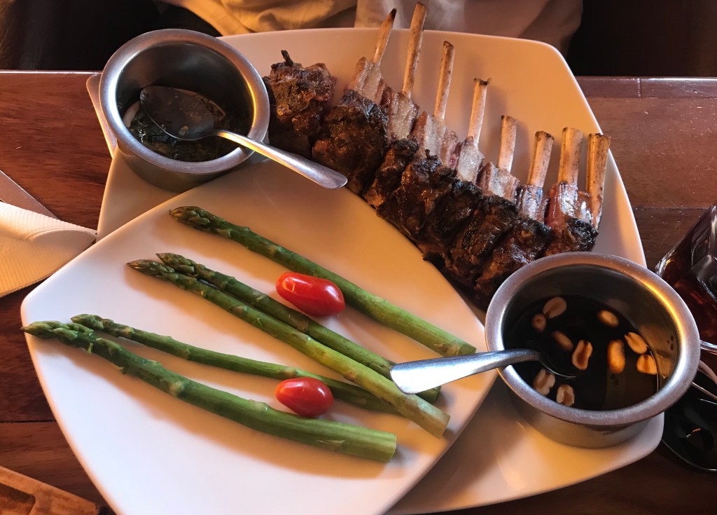 Costillas de Cordero con Espárragos a la Parrilla: Un plato siempre digno de recomendación, en Mexico el cordero se le acostumbra decir Borrego, y se tiene una gran cultura gastronómica en cuanto a su consumo. Cumplió con la expectativas y lo recomendamos.
